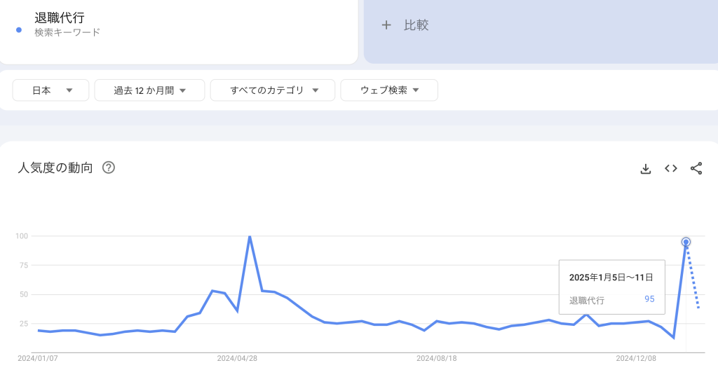 年末年始明けのタイミングでは、退職代行サービスに関する検索数やSNSでの投稿が増加することも特徴です。
