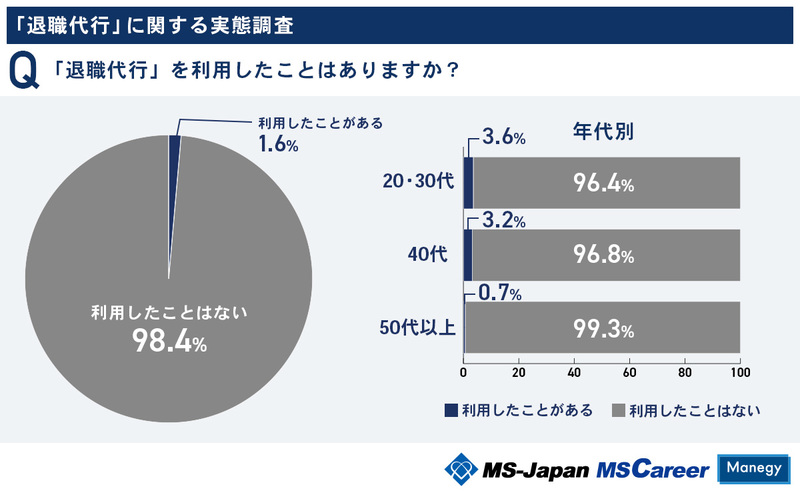 実際に退職代行を利用したことがある人は、全体のわずか1.6%