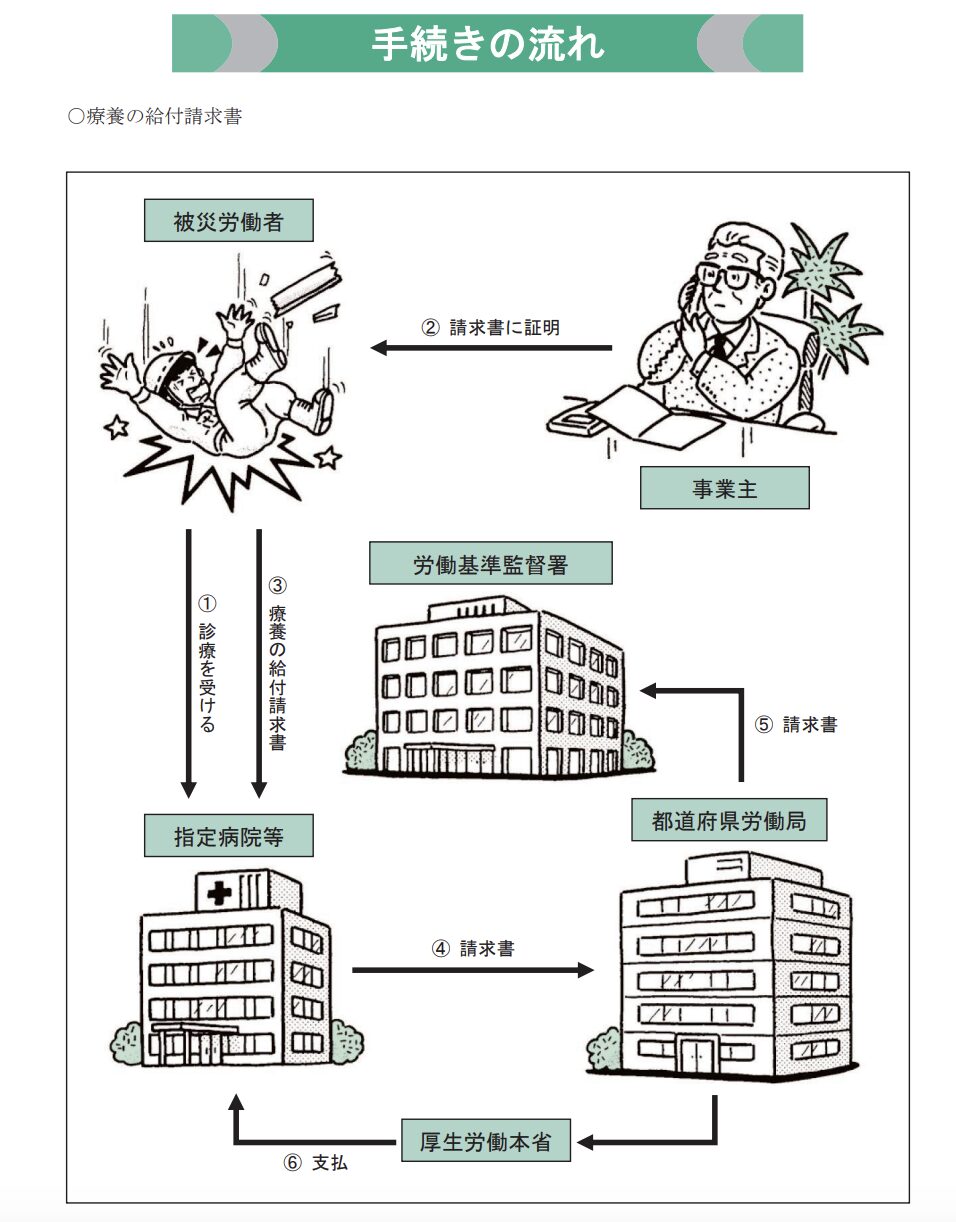 - 労災事故による負傷や職業病の場合、指定の労災保険医療機関での治療を受ける必要があります。これにより、治療費が全額労災保険で補償されます。